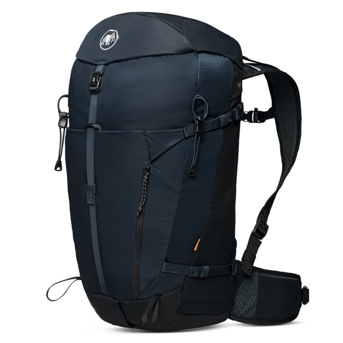 Dámsky ľahký turistický batoh Lithium 30 od švajčiarskej značky Mammut je vyrobený z recyklovaného materiálu a má vode-odolnú úpravu. Veľmi ľahké a priedušné popruhy zaručujú pohodlné nosenie. Vzduchové prieduchy medzi chrbtovým systémom z 3D EVA peny zaručujú dobrú ventiláciu. Bedrový pás obsahuje vrecko pre váš telefón, a pokiaľ by ste vrecko nevyužili, môžete ju jednoducho odopnúť. To isté platí aj pre pláštenku na batoh. Sieťkované bočné vrecká môžete pohodlne využívať aj pri chôdzi.