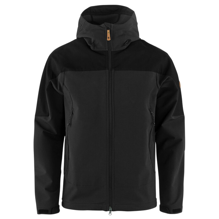 Bunda je vyrobená z pružnej a odolnej tkaniny, ktorá chráni pred vetrom a zároveň zaisťuje komfort pri pohybe. Ramenné časti sú zosilnené pre vyššiu odolnosť proti oderu od batohu. Dvojcestný zips uľahčuje vetranie a manipuláciu, kapucňa aj spodný okraj sú nastaviteľné podľa potreby.