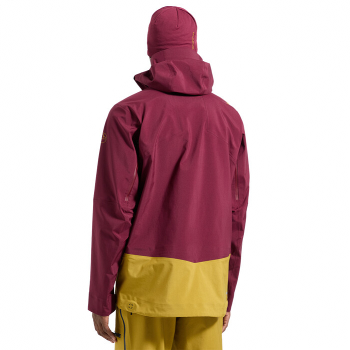 Bunda má voľný technický strih, ktorý neobmedzuje pohyb a umožňuje vrstvenie s teplejšou izoláciou. Vďaka prepracovanej konštrukcii sa spodná časť nezhrňuje ani pri lezení. Kapucňa kompatibilná s prilbou je plne nastaviteľná horizontálne aj vertikálne a spolu s vysokým golierom zabraňuje vnikaniu vetra.