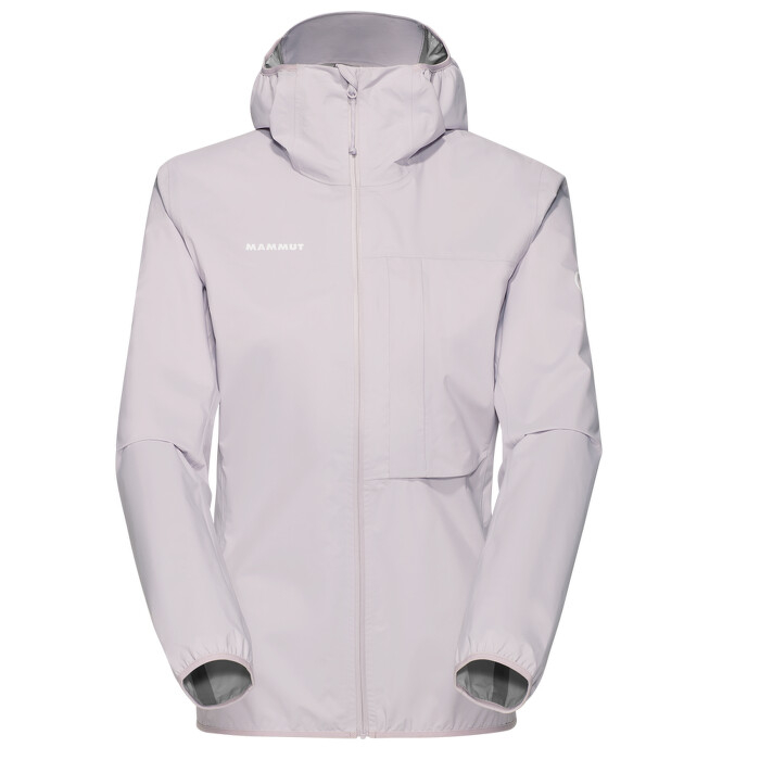 Bunda je vyrobená z membrány Mammut DRY Active, ktorá zaisťuje nepremokavosť, priedušnosť a odolnosť voči vetru. Patent na hrudi umožňuje otvorenie centrálneho zipsu a reguláciu teploty pri zvýšenej fyzickej aktivite. Predtvarovaná kapucňa skvele sedí a predtvarované rukávy dopĺňajú elastické manžety. Vnútorné vrecko má väčšie rozmery, švy na ramenách sú umiestnené tak, aby neprekážali pri nosení batohu, a spodný lem je elastický. Bundu jednoducho zbalíte do hrudného vrecka, čo oceníte pri cestovaní alebo športových aktivitách.