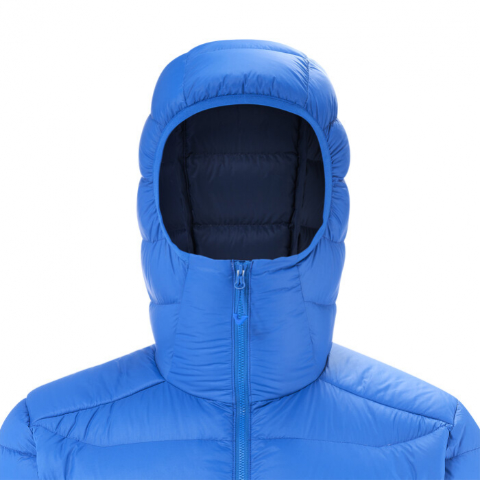 Vrchný materiál TORAY® LIGHT RIP STOP je ľahký a odolný. O teplo sa stará kombinácia recyklovaného kačacieho peria a syntetickej izolácie REPREVE® RECYCLED SYNTHETIC DOWN, ktorá zachováva hrejivosť aj pri navlhnutí. Kapucňa sa dobre prispôsobí hlave a poskytuje dodatočnú ochranu.