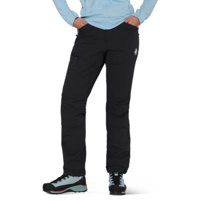 Nohavice sú vyrobené z vysoko mechanicky odolného softshellu Mammut FLEXGUARD Active, ktorý bez problémov zvládne aj oder o skaly. Materiál je 4-směrne strečový, čo v kombinácii s predtvarovanými kolenami zabezpečuje maximálnu voľnosť pohybu. Pas nohavíc je ľahko nastaviteľný pomocou nízkoprofilového bočného sťahovania na suchý zips. Dve predné vrecká na zips a jedno stehenné vrecko bezpečne uchovajú vaše cennosti. Spodná časť nohavíc je vybavená sťahovacou šnúrkou a fixačným háčikom, čo umožňuje ich jednoduché pripevnenie na turistickú či vysokohorskú obuv.
