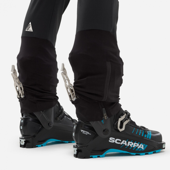 Spodná časť nohavíc je elastická a vybavená rozparkom na zips s klinom, čo uľahčuje ich použitie s lyžiarkami. Praktickým prvkom je aj priamy prístup k topánkam, ktorý umožňuje rýchle prepnutie medzi režimom výstupu a zjazdu. Na stehne sa nachádza sieťované vrecko, vhodné na drobnosti, ktoré chcete mať po ruke.