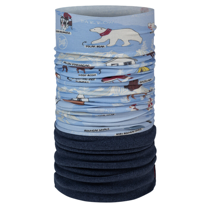 Detská šatka z polárneho flísu od značky Buff s motívmi zvierat. Vyrobená z príjemného polyesterového recyklovaného mikrovlákna.