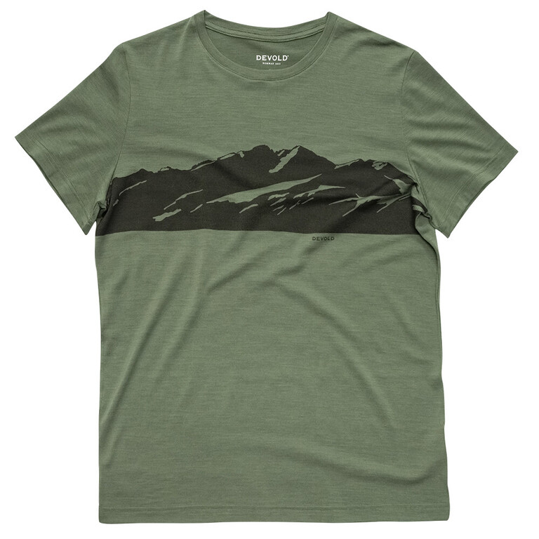 Pánske tričko Classic View Tee od nórskej značky Devold kombinuje funkčnosť s horskou estetikou. Horská grafika na hrudi odkazuje na spojenie s prírodou a aktívnym životným štýlom.
