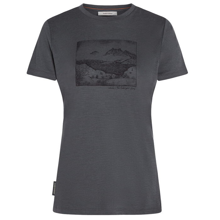 Tričko je vyrobené zo 100 % merino vlny, ktorá zaručuje pohodlie, priedušnosť a sviežosť počas celého dňa. Dámsky strih s krátkymi rukávmi a okrúhlym výstrihom pohodlne sadne. Posunuté ramenné švy znižujú trenie a zvyšujú komfort pri nosení batohu. Potlač vznikla v spolupráci s umelkyňou Tina Schwizgebel-Wang, inšpirovanou dvojdňovým trekom údolím Trient až na vrchol Bel Oiseau. Ilustrácia je vytlačená ekologickým, 100 % prírodným pigmentom.