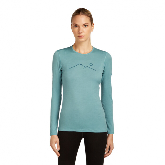 Dámske tričko Merino 200 Oasis LS Crewe Rainer Ridge od spoločnosti Icebreaker je ideálnou základnou vrstvou na celoročné aktivity.